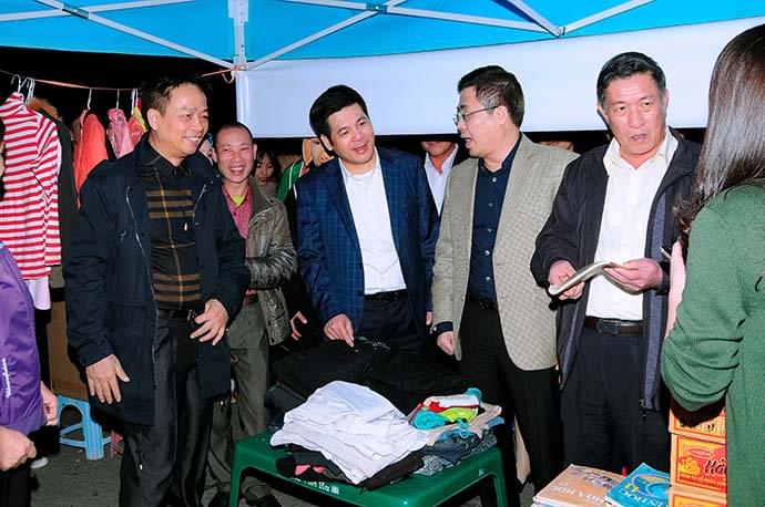 Chủ tịch Nguyễn Hồng Diên, Phó chủ tịch Phạm Văn Ca cùng đoàn lãnh đạo tham Phố đi bộ. Tiếp đoàn có Chủ tịch HĐQT Công ty Ông Lương Giang Nam, Phó tổng giám đốc, GĐ chi nhánh Thái Bình Ông Phạm Văn Trường