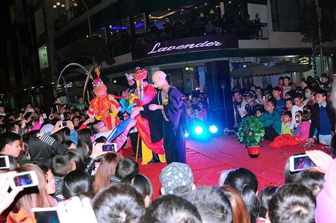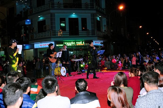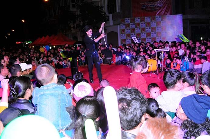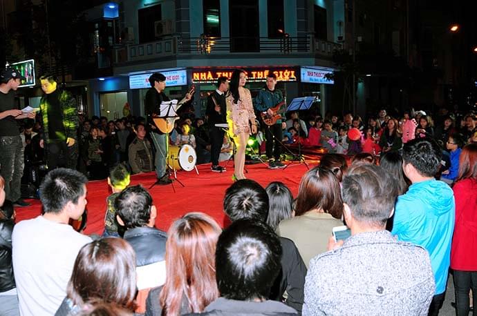 Tại Phố đi bộ, quý khách không chỉ được thưởng thức ẩm thực vùng miền, mua sắm mà còn được xem biểu diễn nhiều loại hình nghệ thuật đặc sắc. Một số hình ảnh về các tiết mục nghệ thuật diễn ra hàng tuần tại Phố đi bộ: