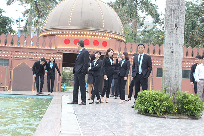 Chủ tịch HĐQT Lương Giang Nam và lãnh đạo công ty chụp ảnh lưu niệm cùng nhân viên Hoàng Nam INO