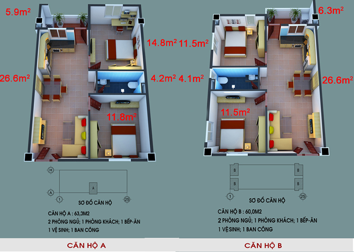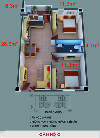 Trong đó diện tích bán và cho thuê nhà ở xã hội chiếm 80% (khoảng 107 căn), còn lại là diện tích bán thương mại.
